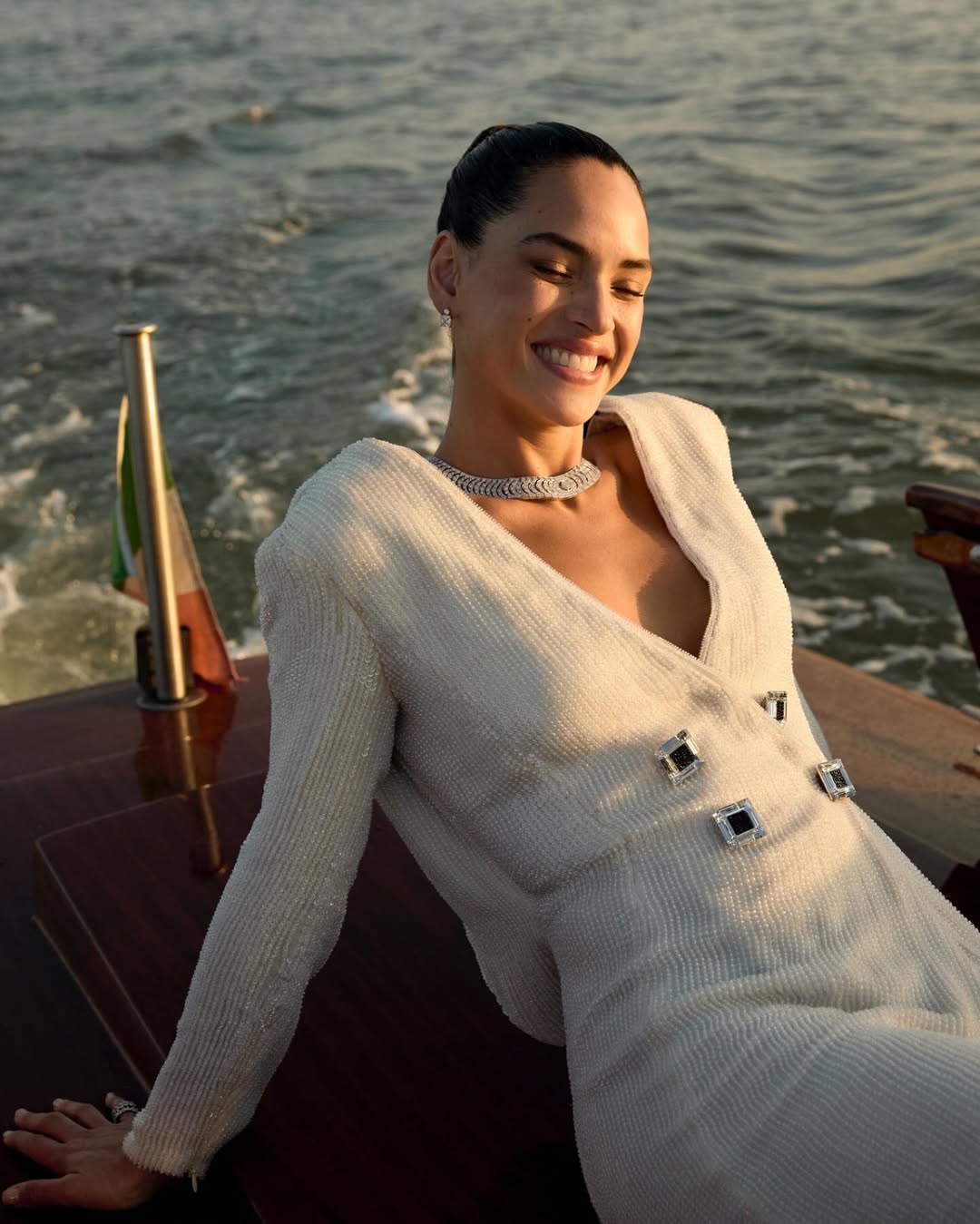 When it comes to makeup, Adria often opts for natural looks and this case was no different, indeed Armani Beauty global makeup artist Hiromi Ueda kept everything natural, focusing her attention on the skin and barely on the eyes and lips.