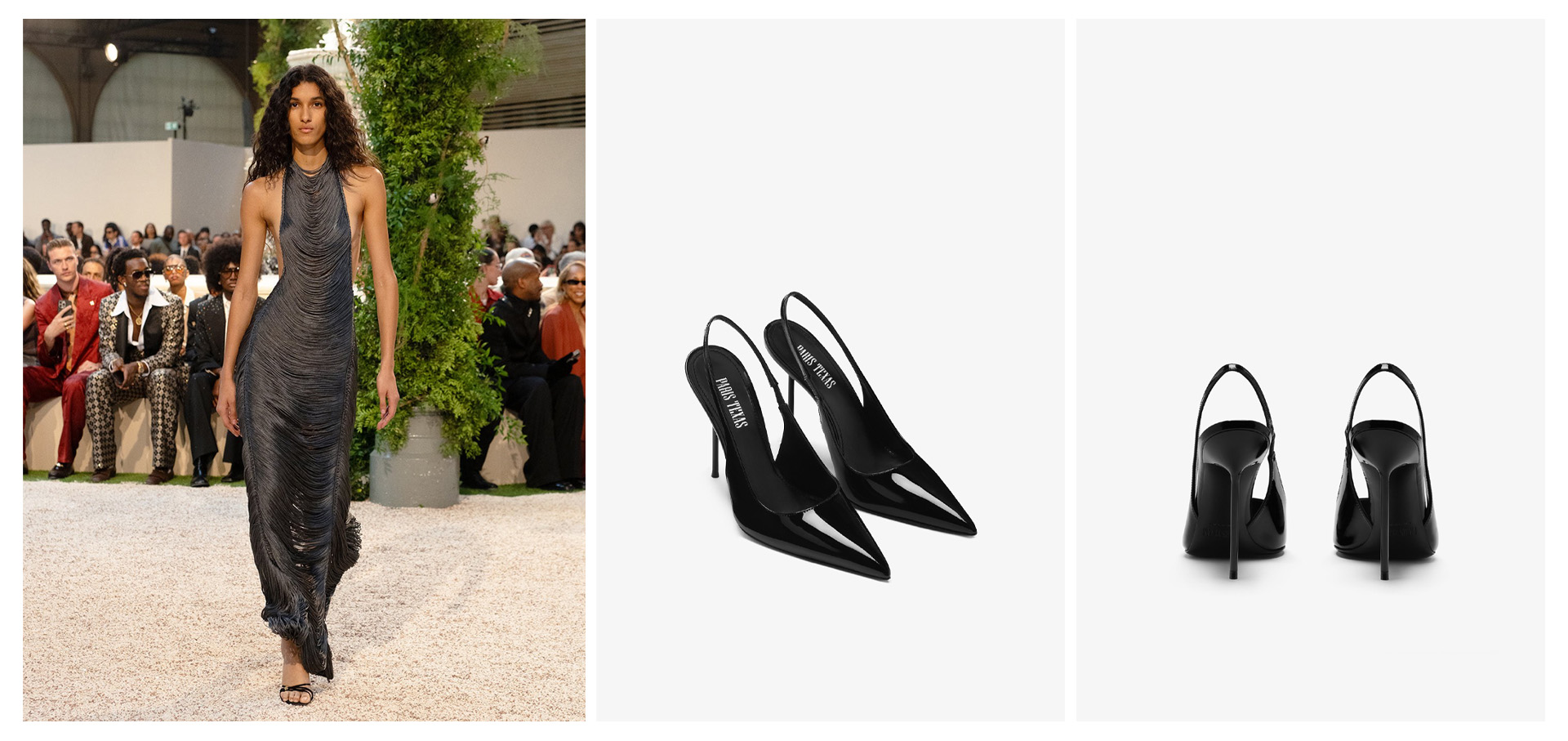 For the event, Maxwell donned a grey Amiri halter neck see-through dress from the Spring-Summer 2026 collection, paired with black Paris Texas ‘Lidia‘ patent leather slingbacks.